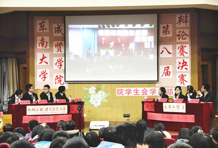 12月20日,由院学生会学习部举办的第八届辩论赛总决赛在真知馆报告厅举行。院学工部副部长、团委书记杨阳,电气工程系综合办主任颜秉明等担任评委。