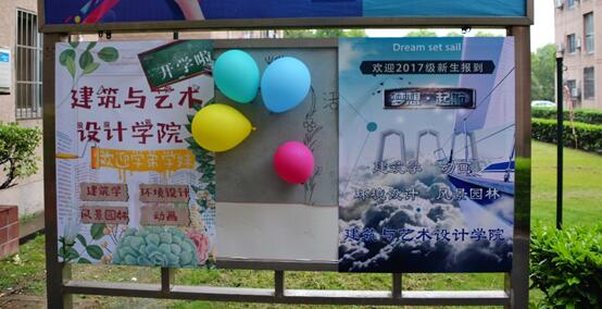 今年学院学生会在报道教室后张贴大喷,每位新生依次在办理手续结束后在其前拍照留念,留下刚入学时青涩的模样,照片中的他们露出一丝激动,兴奋,微微的害怕与期待。