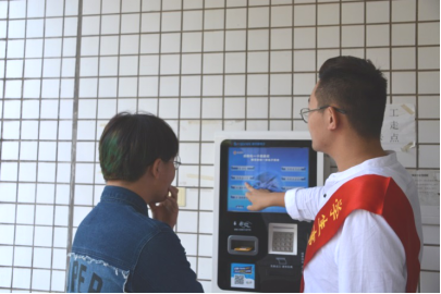 党员同志帮助同学使用校园自助机器