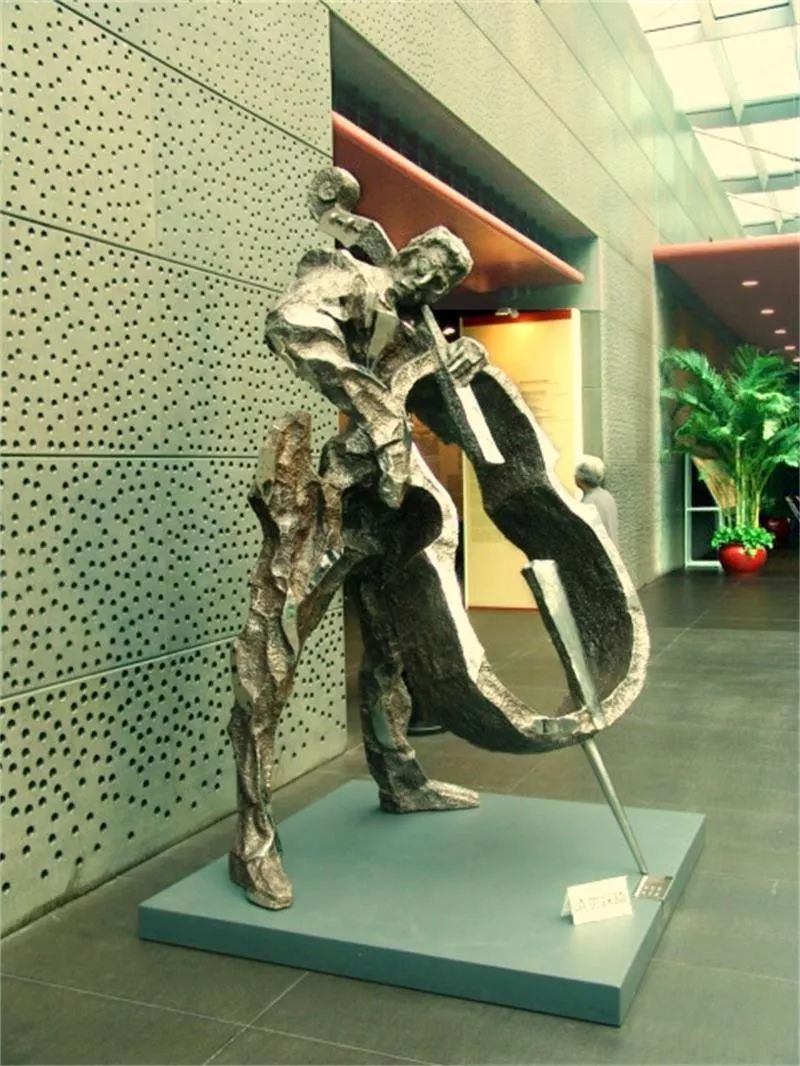 外凸立面上大多布置呈平面状的陈设品如绘画、书法、壁挂等,外凸立面前有较大的空间则可布置立体状陈设品。如图 3.2.18外凸立面上的装饰示意,又如图 3.2.19 a 大剧院入口宽敞廊道中的雕塑。