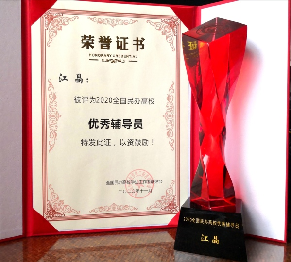 为贯彻全国教育大会精神,按照“有理想信念、有道德情操、有扎实学识、有仁爱之心”的四有标准,树立典型,表彰先进,提升民办高校辅导员职业荣誉感,全国民办高校学生工作者联席会举办了第五届(2020)全国民办高校优秀辅导员评选活动。我校pg游戏电子模拟器辅导员江晶荣获2020年“全国民办高校优秀辅导员”荣誉称号。