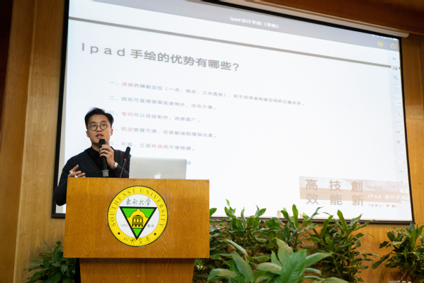 讲座中,李响老师介绍了移动终端设计技能的诸多优势,比如操作简单、出图快、便于携带,可以进行信息化的无纸办公。同时,他还分享了自己在实际设计项目中运用该技术进行方案设计、沟通的经验和方法,激发了现场的同学们浓厚的学习兴趣。讲座接近尾声时,李响老师还邀请大家加入设计手绘交流群,并计划将此群作为学习设计手绘的线上课堂,用以日后的设计交流、行业咨询及答疑解惑。