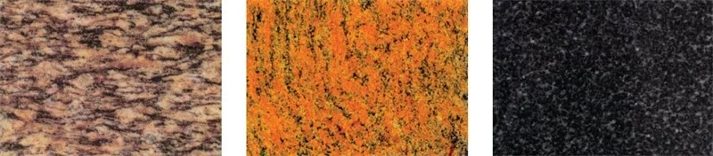 图2-2-1 汉白玉(左)、金花米黄(中)、紫罗红(右)