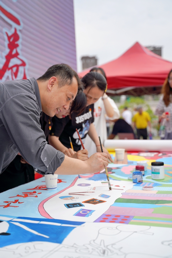 最后,党员同志们拿起画笔,共绘时代长卷。大家描绘着对党的崇敬向往,描绘着祖国的可喜变化,将自己的赤诚之心浓缩在画卷之上。整幅画卷描绘了中国共产党百年发展的壮丽篇章,展示了建党百年来的党史故事,叙述了新时代的美丽新江北。
