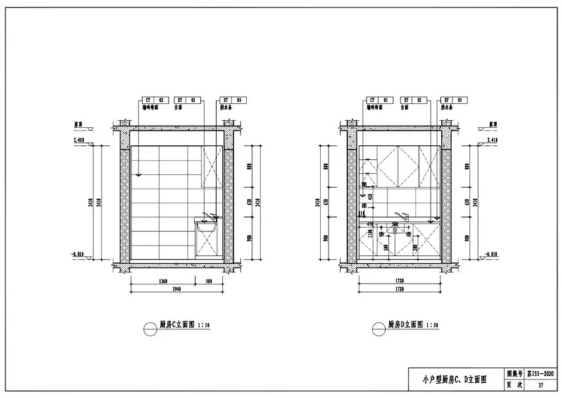 小户型厨房C、D立面图