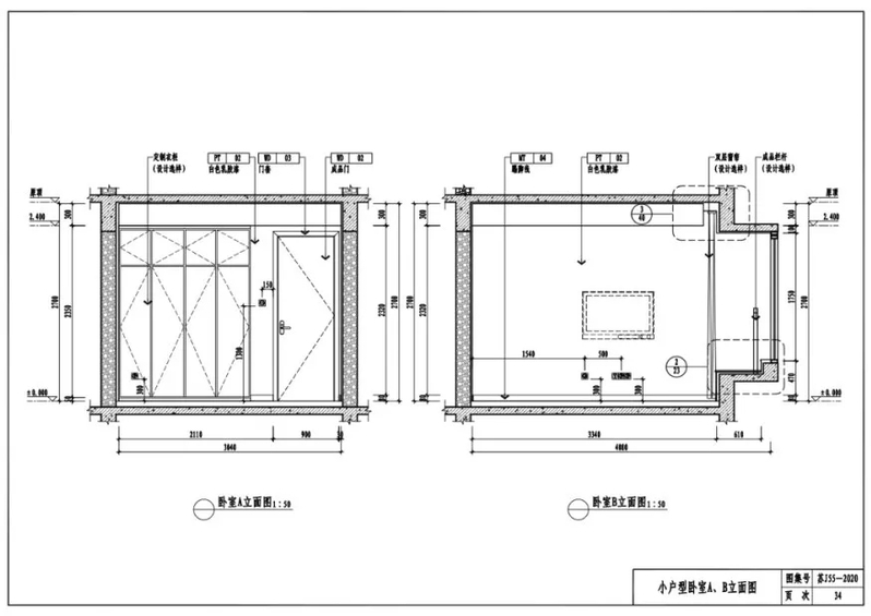 小户型卧室A、B立面图