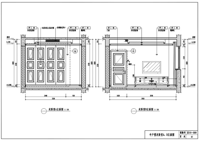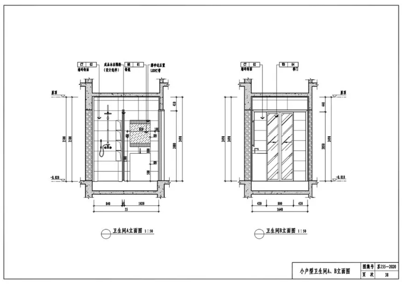 小户型卫生间A、B立面图