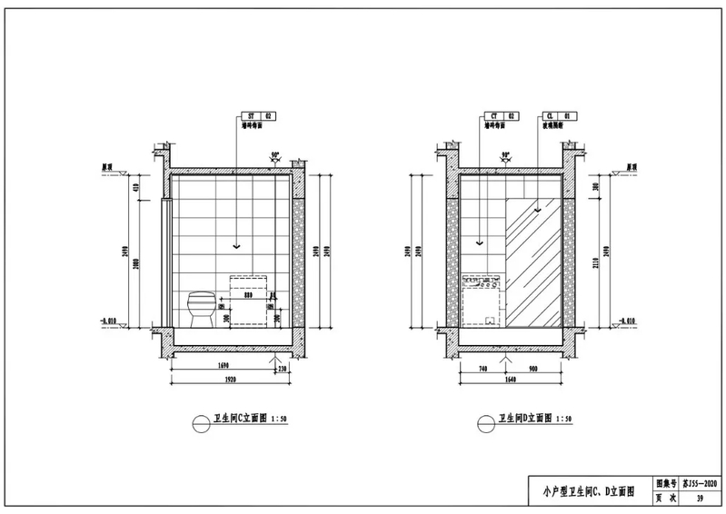 小户型卫生间C、D立面图