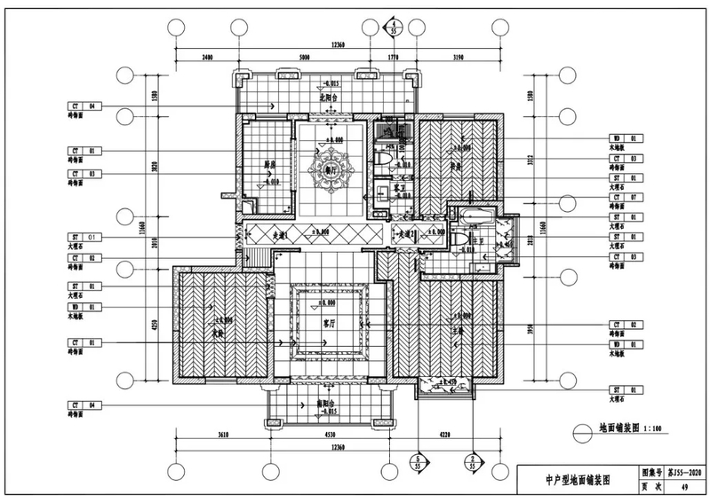 中户型地面铺装图