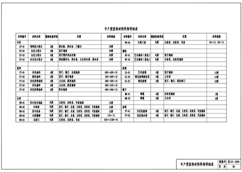 中户型装饰材料终饰明细表