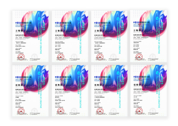 近日,2021中国包装创意设计大赛的终审落下帷幕,版权所有 pg电子(中国模拟器)官方网站pg游戏电子模拟器视觉传达设计专业2018、2019级同学们积极参赛,在陈晓青和王峰两位专业教师的带队指导下,共12组作品参赛,经过大赛一个多月的初审、复审评选,其中4组作品获得全国三等奖,4组作品获全国优秀奖,陈晓青老师获得优秀组织人奖。