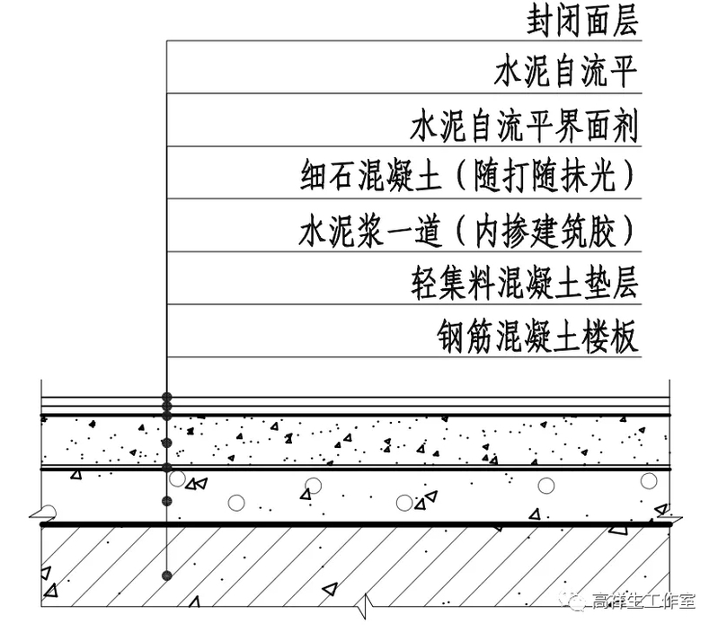 图 12-9-7 复合地板水暖地面构造节点图(发泡水泥绝热层)