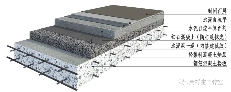图 12-2-6 轻集料垫层地砖地面三维图(素水泥膏)