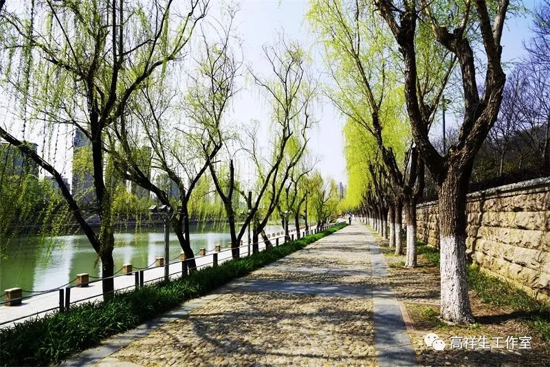 水塘的南边是奔向长江的秦淮河,河岸杨柳万千,河浪前呼后涌,河水缓缓而行,在岸边也能听到河水奔跑的声音,似乎在诉说着石头城的千年沧桑。