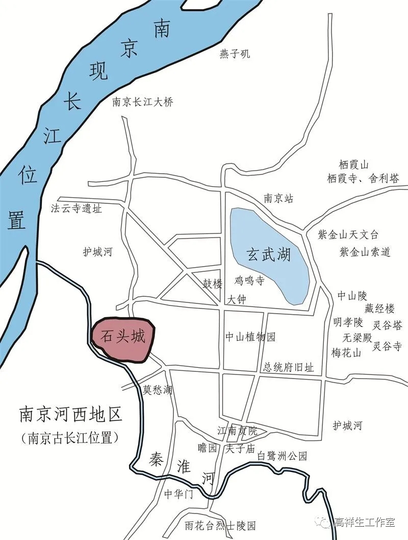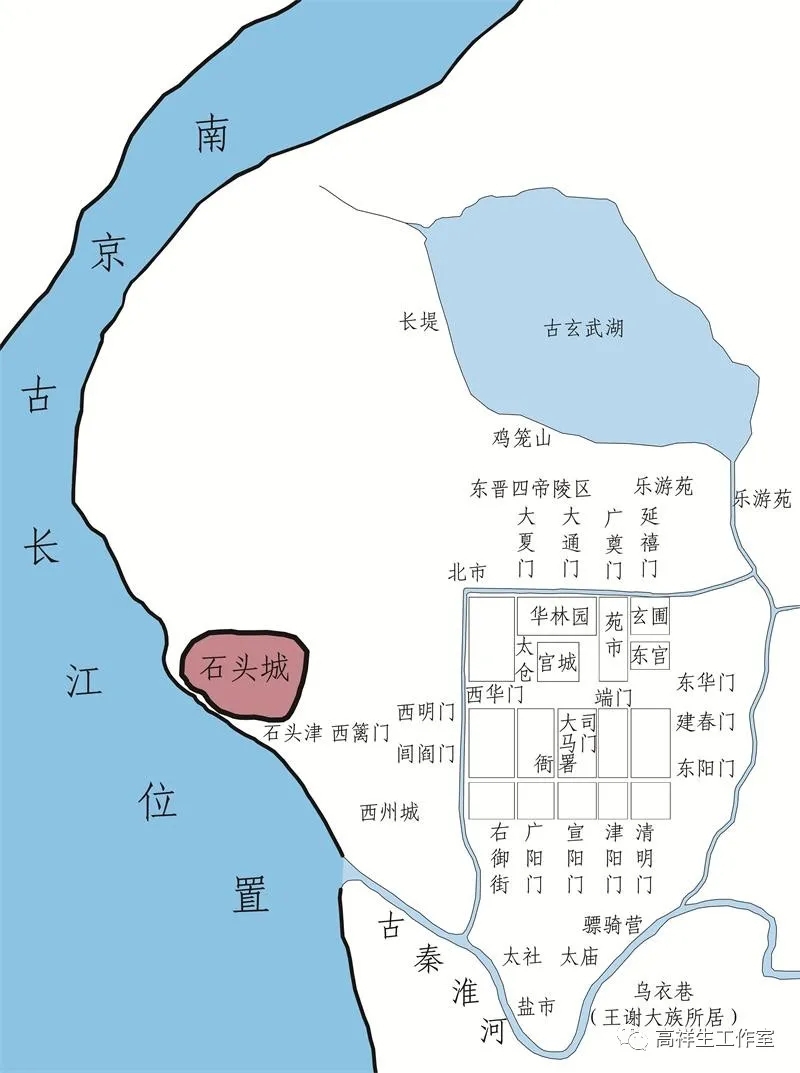 唐初以前石头城和长江水域的关系 高祥生工作室根据资料绘制