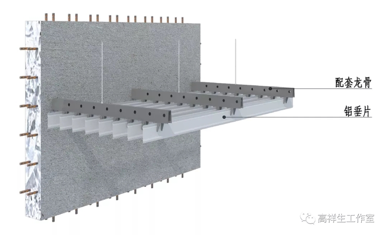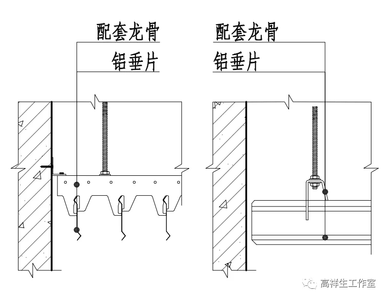 图 13-3-14 铝垂片顶棚构造节点图
