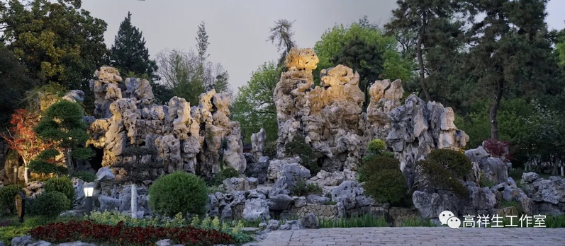 夕阳下公园入口处的叠石屏障 高祥生摄影