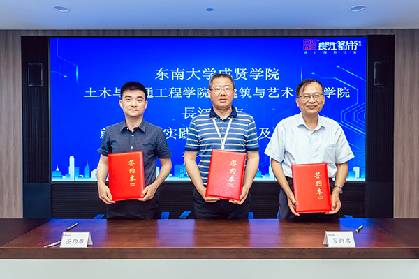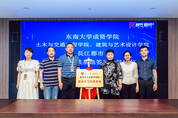 人力资源部经理刘友存则向与会领导、老师介绍了从2013年起入职长江都市的19位成贤校友的职业发展情况,他们在结构设计、建筑设计、室内设计、环境设计等多个岗位,展现了成贤学子扎实的专业功底和良好的综合素质,为企业的快速发展贡献了自己的青春智慧。科研技术管理部经理韦佳以《坚持“双创”战略驱动持续发展——长江都市设计创优与科技创新》为主题,介绍了长江都市从传统的设计企业向工程设计与科技创新相集合的科技企业的转型之路,介绍了企业近年来在绿色建筑与装配式建筑、办公建筑的创新应用、科研课题与技术研究等方面所取得的成果。随后土木与交通工程学院院长郭正兴、pg游戏电子模拟器党总支副书记邵叶鑫,分别代表两个学院与南京长江都市建筑设计股份有限公司总经理董文俊签订了《就业实习实践基地协议书》并挂牌“版权所有 pg电子(中国模拟器)官方网站就业实习实践基地”。