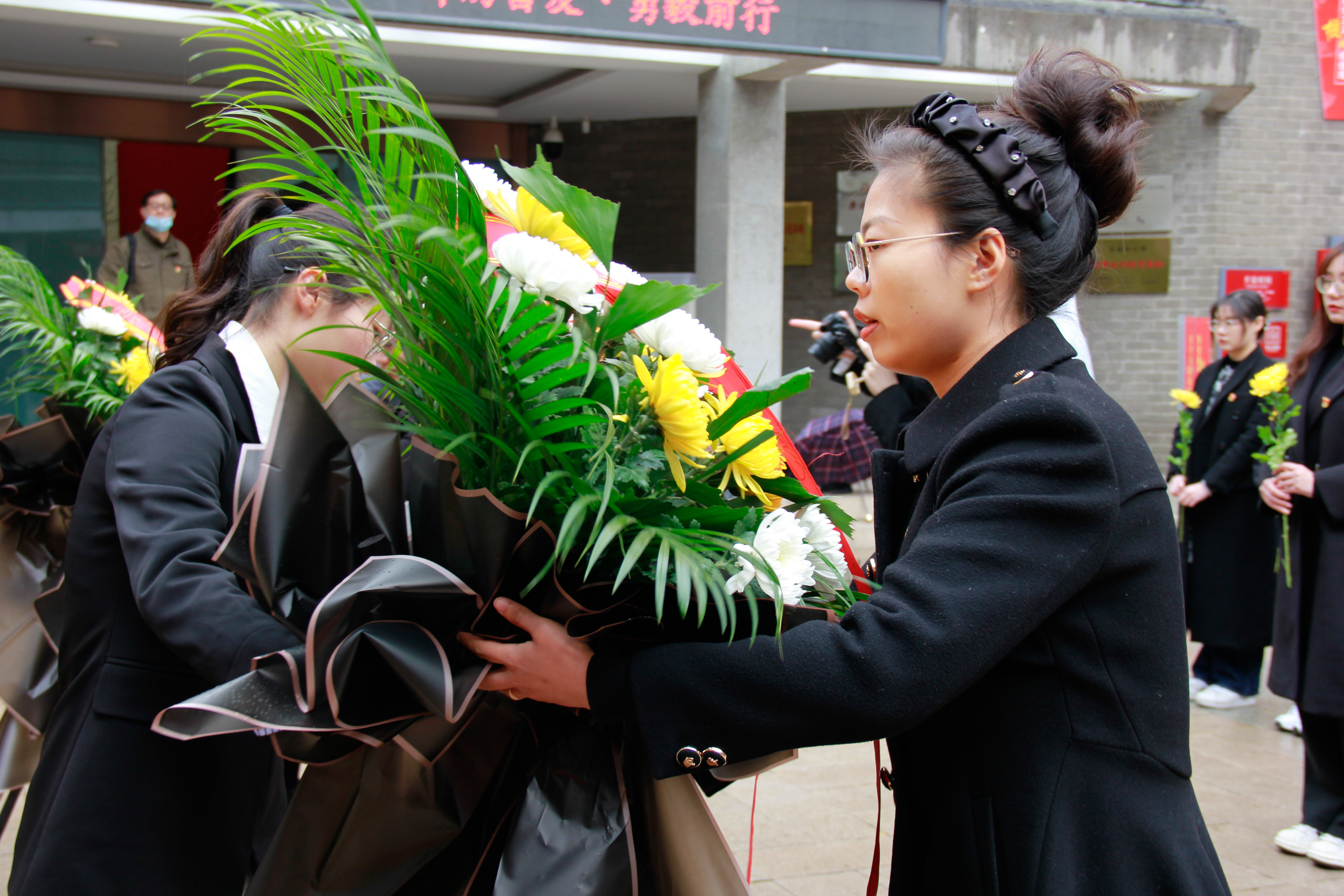 师生代表敬献花篮