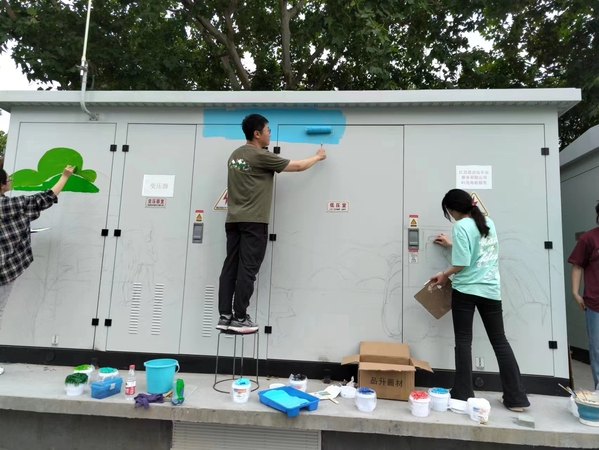 6月7日,受江北新区泰山街道委托,由我院教师陈凌航牵头,孙浩负责,22级动画专业部分学生参与的江北新区左所雅苑变电箱涂装实践活动圆满收官。实训成果通过三方验收,并得到了业主方和所在社区的一致好评,师生们代表我院向江北新区社会主义新农村建设交出了一份优秀的作业。