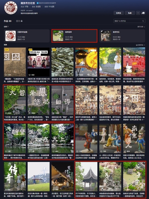 杨院长带领观众走近南京金陵芥子园、金陵瞻园和金陵愚园,一同感受江南园林的无穷韵味,内容丰富,内涵深厚。《南京园林》系列短视频南京市文化馆抖音平台今年推出的新栏目,作为南京市文化馆大力开发数字文化产品之一,旨在广大群众随时随地接受艺术的熏陶