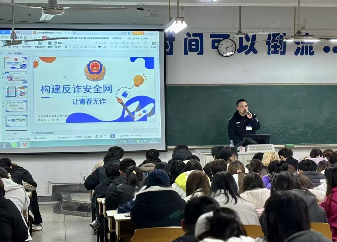 为增强学生的防诈意识,318日,学院邀请保卫处刘畅老师和泰山派出所驻校民警王晓彤警官在文昌101为学生做题为“构建反诈安全网,让青春无诈”的讲座报告,报告中,王警官通过图片、视频、诈骗案例以及互动问答等方式,从电信网络诈骗的定义、社会面电信网络诈骗案件发案形势、校园师生受骗的常见诈骗类型、网络诈骗防范建议四个方面进行宣传教育和正向引导。通过本次讲座,进一步加深了我院学生对防范电信网络诈骗知识的了解,增强了防范诈骗的意识和能力