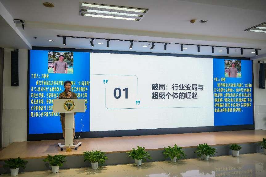 4月16日下午,由pg游戏电子模拟器主办的“空间艺术设计的新拐点——AI赋能‘超级个体’时代 ”专题讲座在求真·求美·创新工坊举行。学院邀请南京齐春园生态科技有限公司董事长冯艳春担任主讲嘉宾,pg游戏电子模拟器200余名师生参加了本次讲座,讲座由pg游戏电子模拟器党总支副书记邵叶鑫主持。