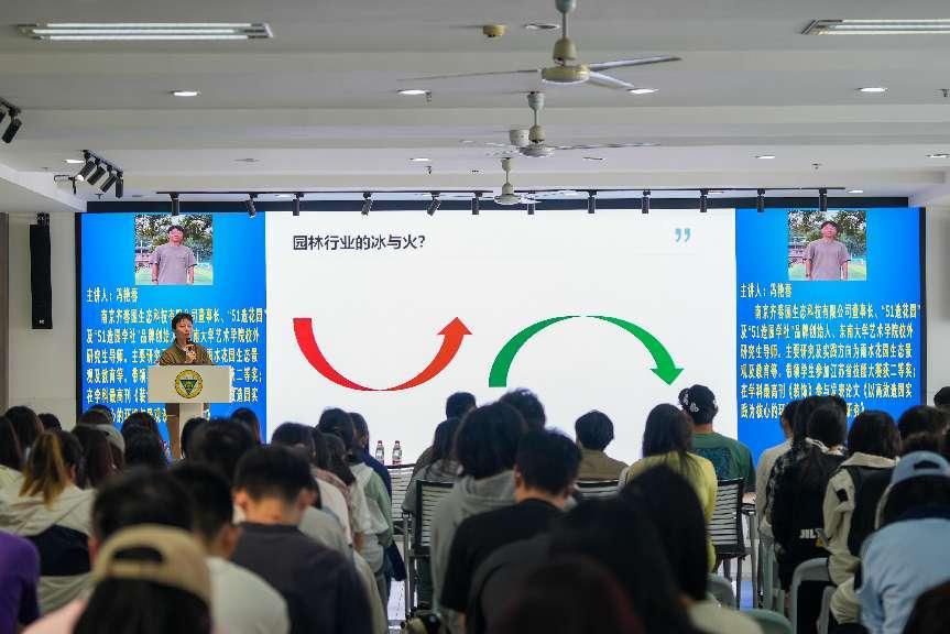 冯艳春老师“51造花园”及“51造园学社”品牌创始人、东南大学艺术学院校外研究生导师在讲座中,他结合自身创业经历和教学实践,从破局、重构、进化、突围、行动五个方面阐述空间艺术设计当前面临的挑战与机遇,解析AI技术如何助力超级个体实现更加高效、个性、智能的设计与多重职业赋能“破局”开篇,冯老师指出人才需求的变化AI技术冲击正倒逼行业转型,兼具创意、技术与跨界能力的“超级个体”成为稀缺资源。借助AI工具成为个人能力的“外挂”“超级个体”可将设计技术材料等多学科知识融会贯通快速生成方案谈及“重构”,冯老师对比匠人经验与AI量化分析的差异,AI技术正在推动行业从“造园”转向生态修复与文旅IP打造,并以某城市利用AI规划绿地为例,展现数据驱动设计的潜力。在“进化”环节,冯老师展示了如何用AI进行实战场景拆解,将设计师拥有独特审美哲学与AI的数据分析能力相结合,可事半功倍。最后,冯老师呼吁以“AI执行,人类决策”模式突围,AI处理数据生成方案,设计师聚焦创意与人文关怀,鼓励师生切入智慧城市、元宇宙虚拟景观等新兴赛道,并以“千磨万击还坚劲”激励青年拥抱变革。之后,冯艳春老师带领同学们来到室外演示了先进的造园工具,同学们对这样的新科技产生了浓厚的兴趣并积极参与互动