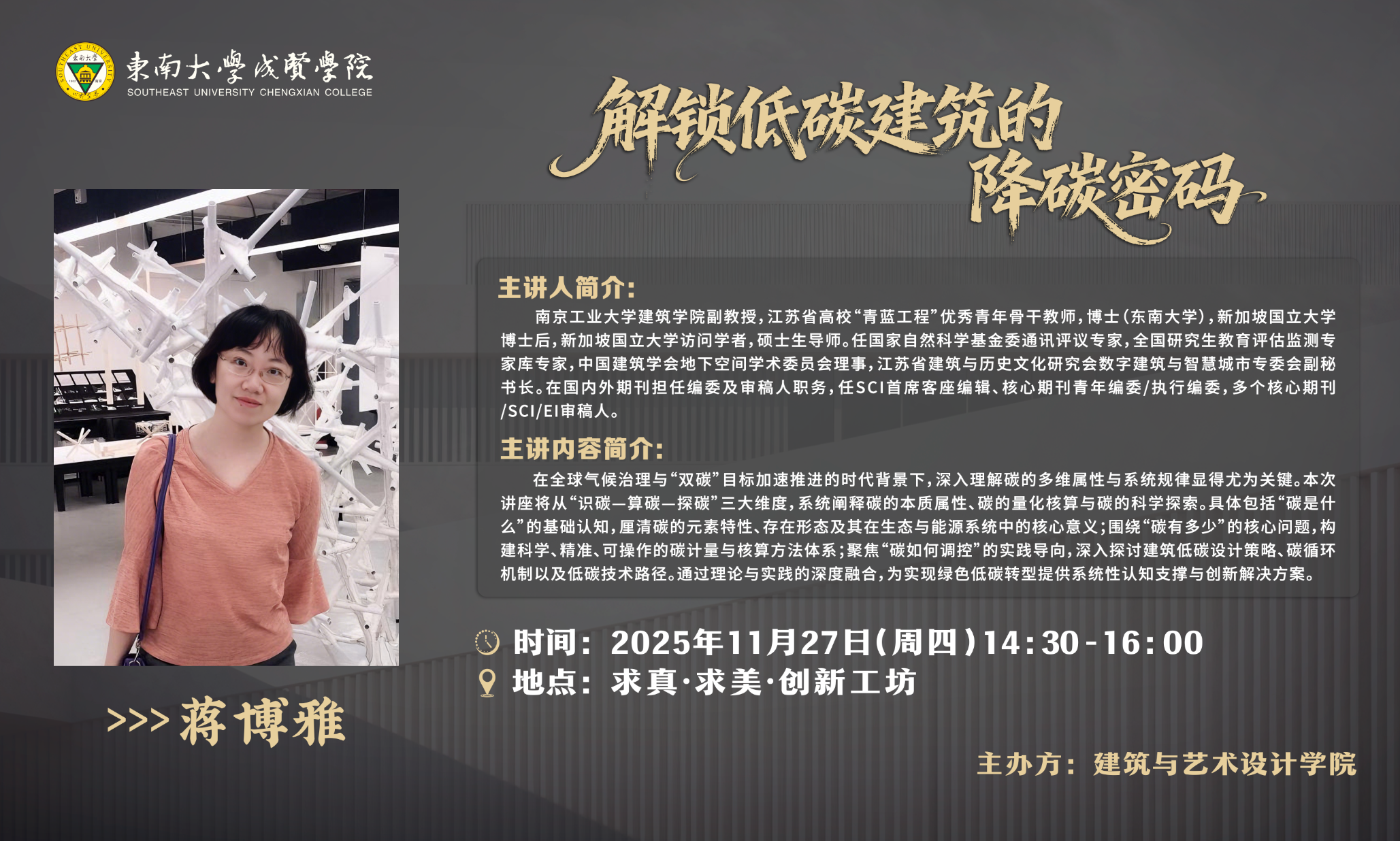【讲座信息】解锁低碳建筑的降碳密码